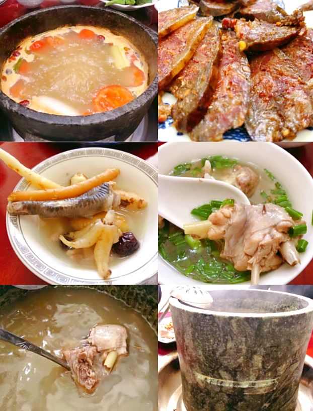 3、藏香鸡:藏香鸡生长在海拔3200-4000多米的高原上,终年放养,无喂料习惯,藏鸡的骨头较小,肉质紧实,很有嚼头,是鲁朗石锅鸡的不二材料。